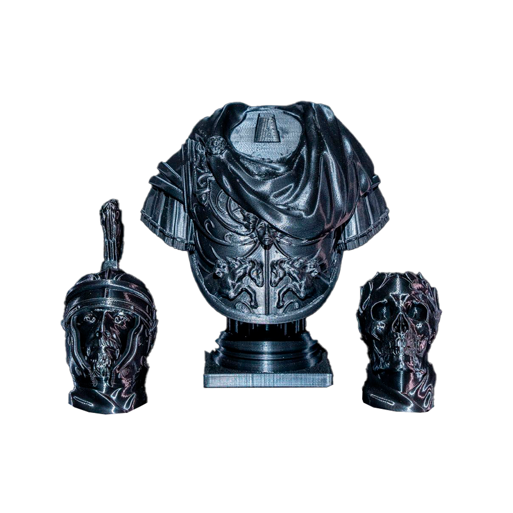 Figura impresa en 3D que representa el busto de un centurión con dos opciones de cabeza (normal y calavera).